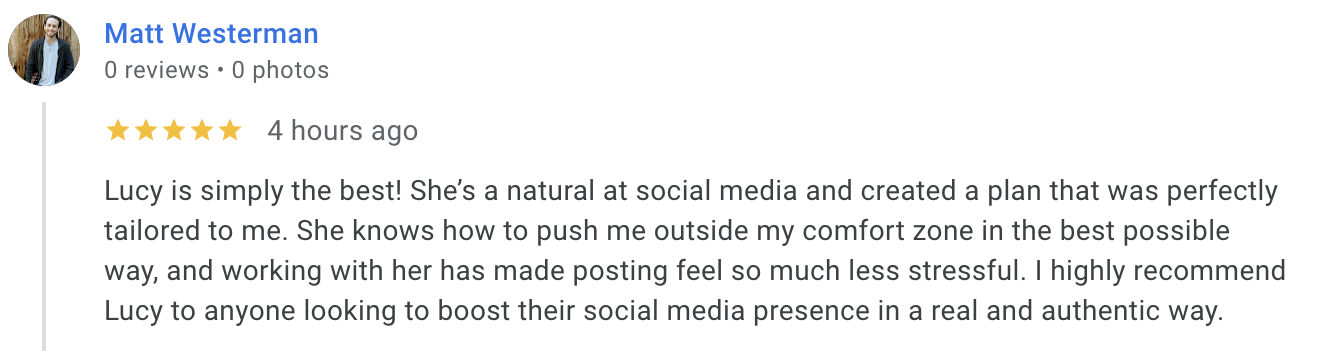 “Before I started working with lucy, I had no idea what to post. Now, I know my exactly what I’m creating each week. It’s less work, and more fun!”
